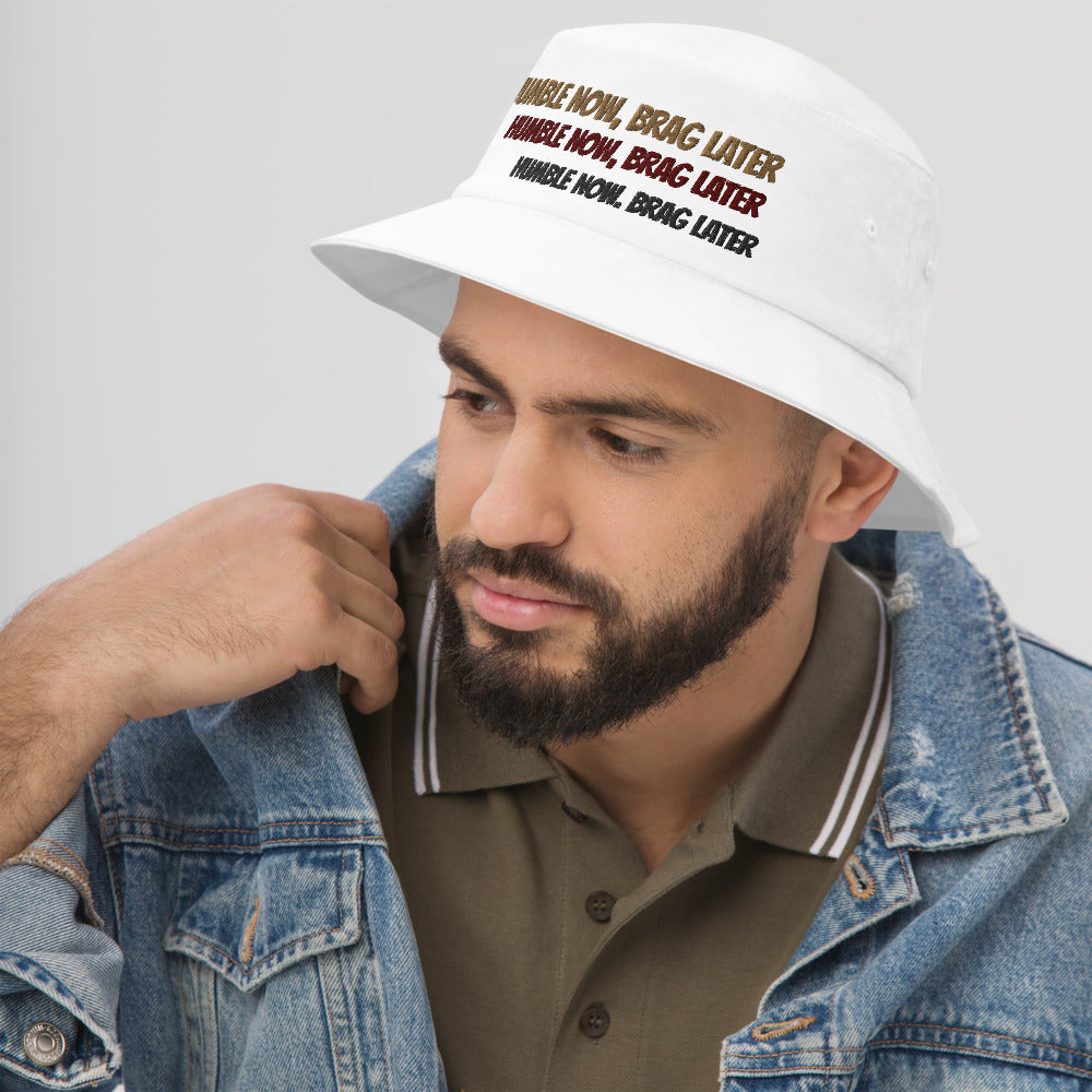 Let your style speak for you. The hat says it all anyway. "Humble Now, Brag Later" is a statement in itself of how we should move in silence (you know, like lasagna). It is a reminder to put in the work now and do not say a word until you accomplish your goals. Then, when you on, BRAG and DRAG on them! Stay HUMBLE NOW and BRAG LATER ?